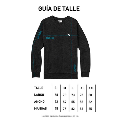 ◦ Buzo cuello redondo de frisa esmerilada y gamuzada. Tacto suave. ◦ Estampa a 3 colores en frente. Tinta con base soft. ◦ Cuello, puños y cintura de ribb complemento. ◦ Etiquetas de marca tejidas. ◦ Composición: 50% Poliéster 50% Algodón. ◦ Fit regular. ◦ Producto nacional.