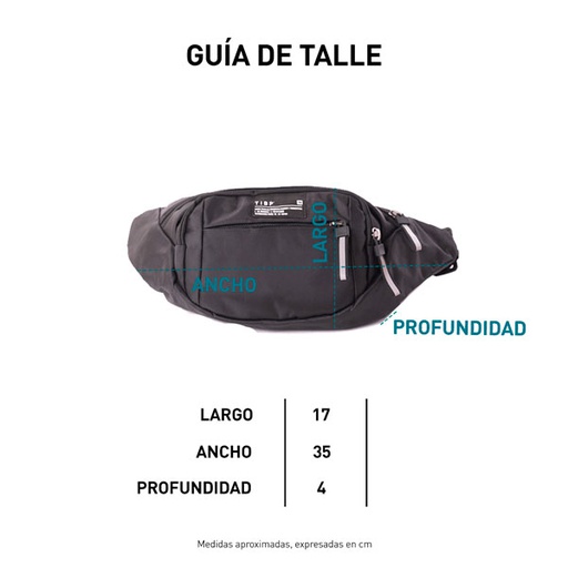 Cordura pesada. 100% poliéster. Bolsillo frontal con cierre. Tiracierres reflectivos. Hebilla plástica. Cinta de poliéster con regulador. Producto importado.